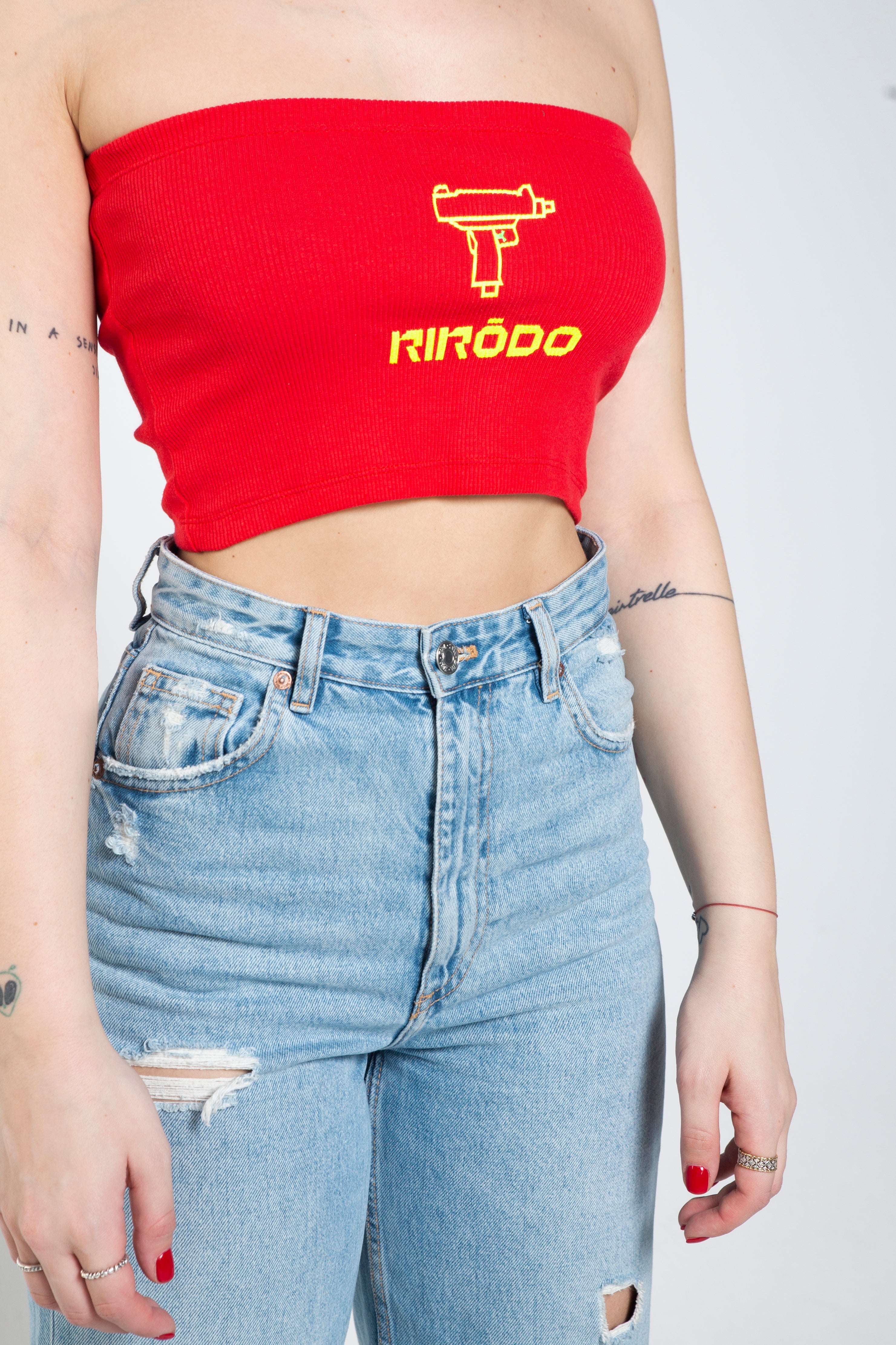 RIRODO RED CROP TOP with front Uzi print is made for the badass ladies.